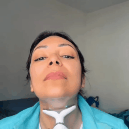 Aplica tu crema habitual y desliza el dispositivo suavemente por el rostro y cuello durante unos minutos, siempre con movimientos ascendentes.